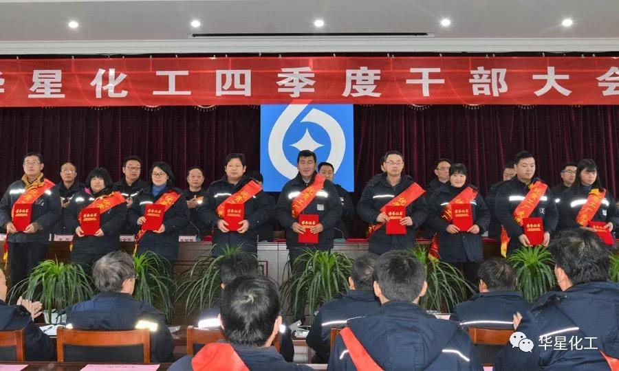 1月12日,华星化工召开第四季度干部大会,公司董事长、总经理、党委书记颜泽彬等班子成员出席会议,各职能部,分公司负责人、中层以上干部及先进单位、先进个人、员工代表共计180余人参加会议。