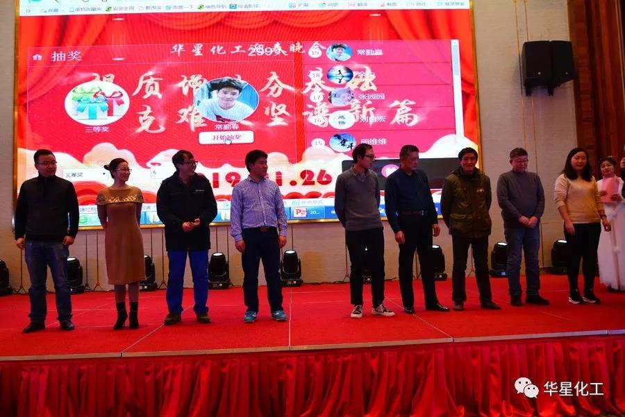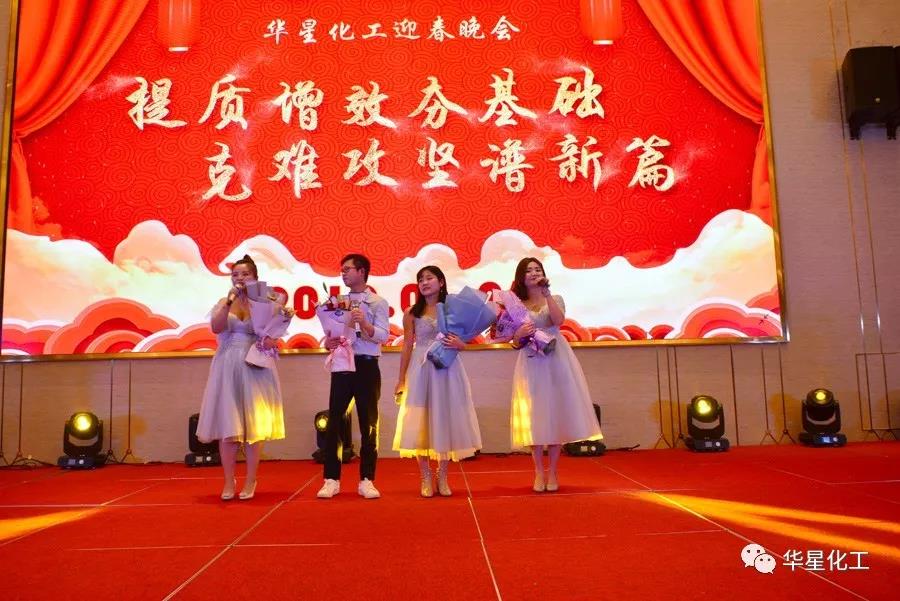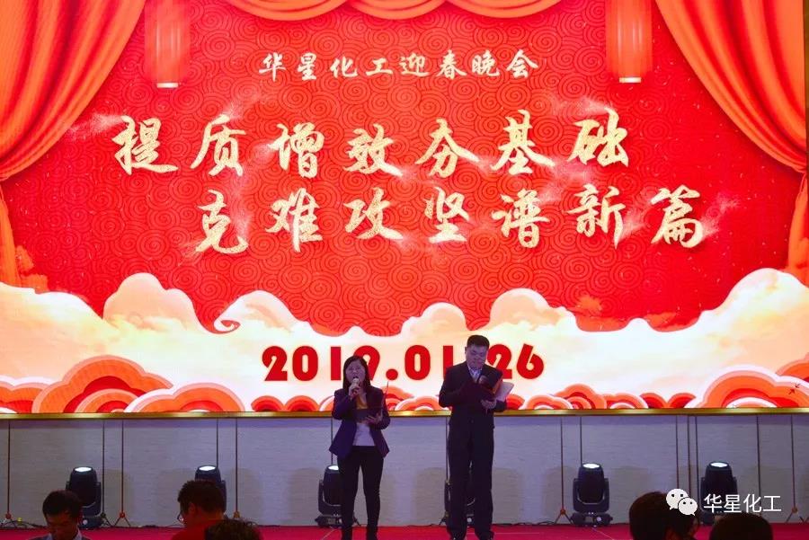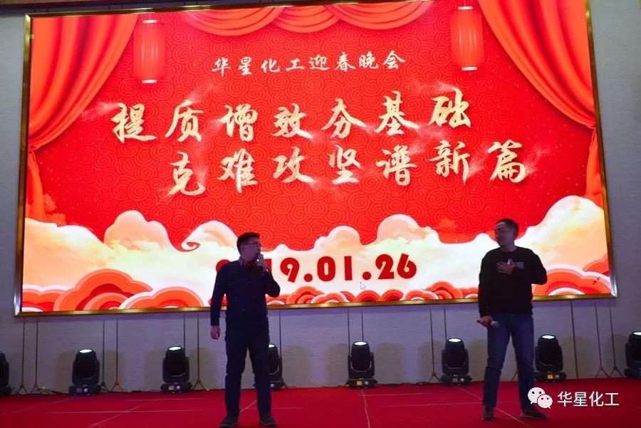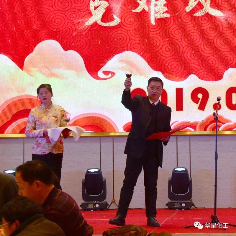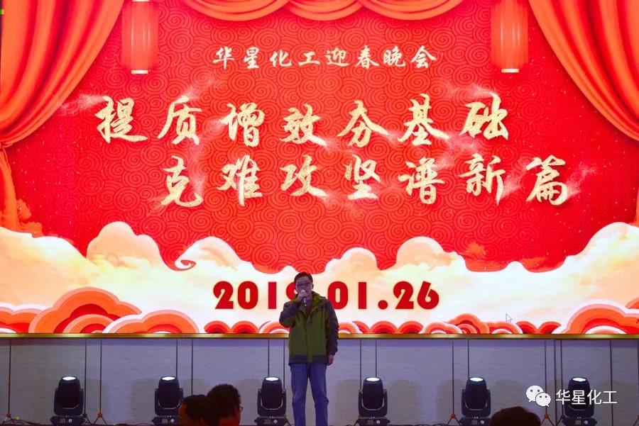 1月26日晚,华星化工张灯结彩,隆重举办2019迎春晚会。公司董事长、总经理、党委书记颜泽彬等班子成员以及员工代表合计380多人参加晚会。总部领导——深圳市大生农业集团有限公司董事长兰华升先生受邀出席晚会。