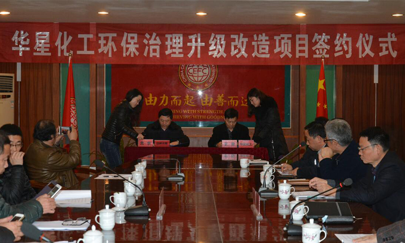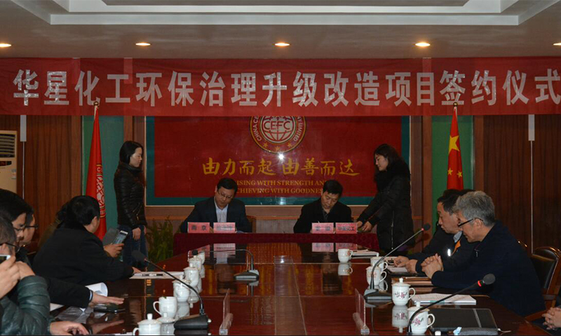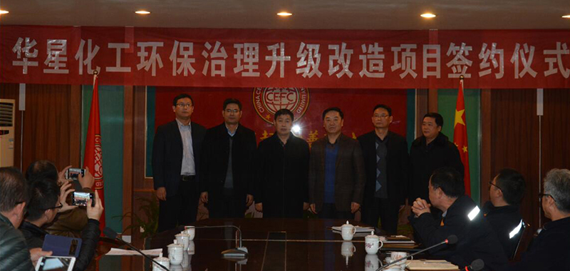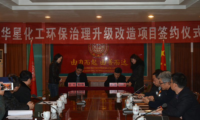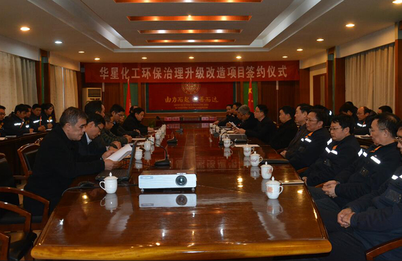 12月26日下午,安徽华星化工在公司四楼会议室举行环保治理升级改造项目签约仪式,总经理颜泽彬、党委书记吴友明等公司高管、相关处室车间负责人及3家中标环保企业代表出席签约仪式。