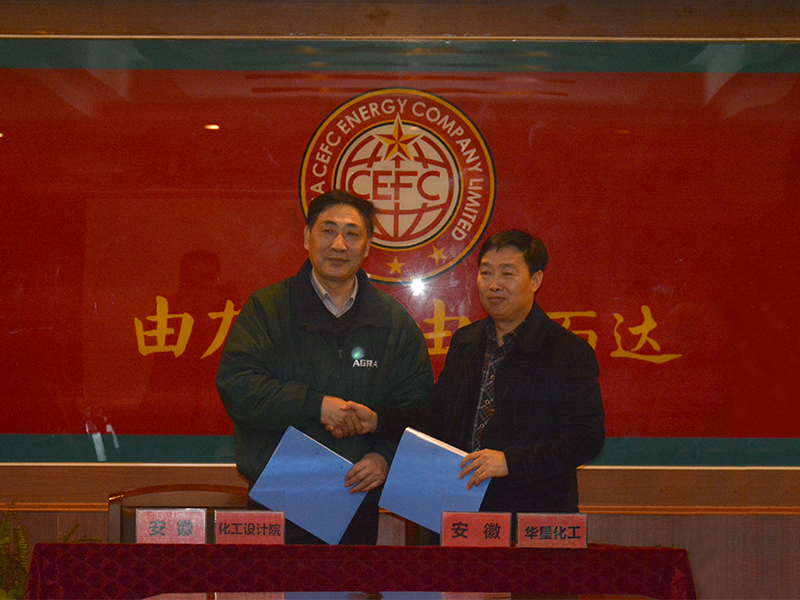 1月5日下午,安徽华星化工与安徽省化工设计院举行战略合作框架协议签订仪式,公司总经理颜泽彬与安徽省化工设计院院长王祖元代表双方签约。