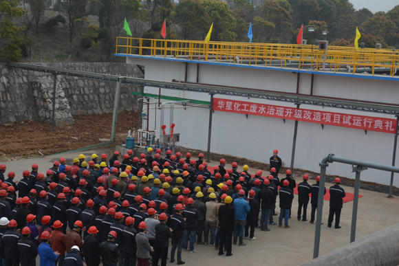经过为期3个月的紧张施工建设,安徽华星化工废水治理升级改造工程于3月30日上午10:18分实施进水试运行。公司总经理颜泽彬、党委书记吴友明等公司高管及各职能部、分子公司负责人、施工单位代表参加进水试运行典礼。
