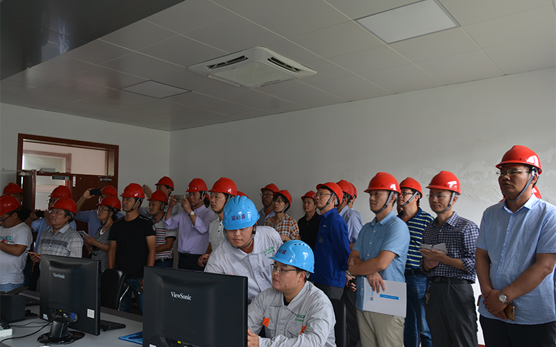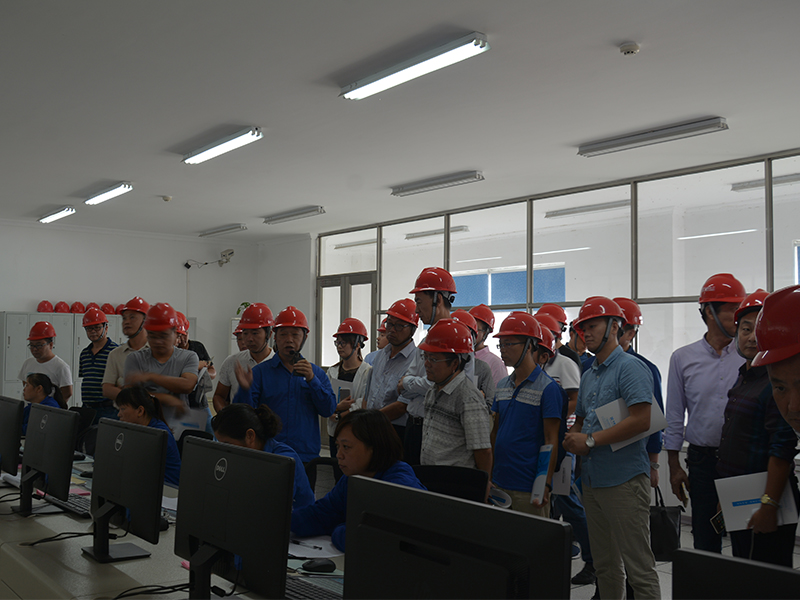 考察组一行在公司党委书记吴友明、副总经理刘元声、李文明的陪同下先后参观我司氯碱分公司、农化生产分公司,现场了解生产工艺流程,实地考察公司上半年度环保升级改造成果,对企业下真功夫谋发展所采取得的得力举措和取得的新成效表示赞赏。