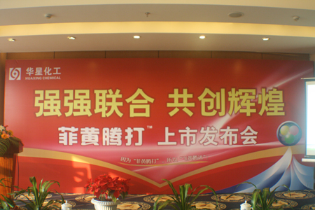 发布会上,华星化工销售总监尹总对草甘膦原药国内生产厂家实力分析及全球行情进行深入的剖析,为参会经销商指明了未来草甘膦混配制剂的经营思路;其次,通过市场部经理鲍伟对“菲黄腾打”产品性能、包装的用材及后续网点保护的防窜货措施进行了的详尽阐述,让参会经销商清楚的了解到 “菲黄腾打”产品的优势所在。会议最后,进行现场签售,客户对“菲黄腾打”产品非常认为;其中湖南金大地公司一单就签订各种规格总数量达到60吨。取得华星公司单品会议销售最好的成绩。
