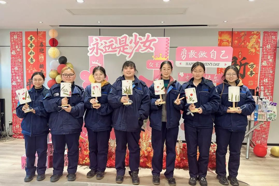午后,长江畔的职工创意工坊花香萦绕。在女工们的奇思妙想下,开启了压花灯创作之旅。粉樱、翠蕨在素绢上翩然定格,鎏金灯架与永生花材相映成趣。"要让每片花瓣都诉说春天的故事",大家都巧妙地把心愿与企业文化LOGO融入灯罩设计。当三十余盏匠心独具的花灯渐次点亮,光影在镂空纹样间流转,恰似女工们智慧与柔美的交融绽放。