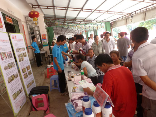从9月上旬公司宣传人员到三亚市中信达公司,近10天时间,按照工作的安排及进度,目前宣传人员共挂条幅40余条,张贴不粘胶条500多张,走访客户28户,接待客户120多人,发放宣传资料400多份,以及其他的宣传品全部到位及悬挂,并且在9月的18号和货仓(佳喜顺收公司)成功举办了一场百美产品技术交流及产品促销会,到会人员达700多人,百美销量达20多万元。由于目前海南处于雨季,高温高湿,容易造成各种病害的爆发及流行,常规药剂很难达到防治效果,加上当地以芒果为主,芒果花期长达一个月,炭疽病、霜疫霉病等真菌病害发生较重,同时芒果花期对很多农药较为敏感,由于华星百美耐雨水冲刷,持效期长,在芒果的各个生长期使用安全,防治病菌谱广,尤其对芒果的花期主要病害都有较好的防治效果,去年,百美经过海棠湾镇100多农户使用反映效果突出,短短一年多时间,百美在当地已成为家喻户晓的品牌,今年再次成为当地果农在芒果花期杀菌用药的首选品种。同时当地芒果面积达9万多亩,百美使用的时间较长,因此百美的销售还会大幅增加。会议之后,我们针对收集来使用我们百美产品的客户资料,通过公司的短信平台已为所有用户发送3次当地的芒果花期主要病虫害的防治技术及百美科学使用方法,受到了当地农户的肯定及赞誉,以后我们还会根据当地的芒果的不同时期不定期的发送一些信息及资料。
