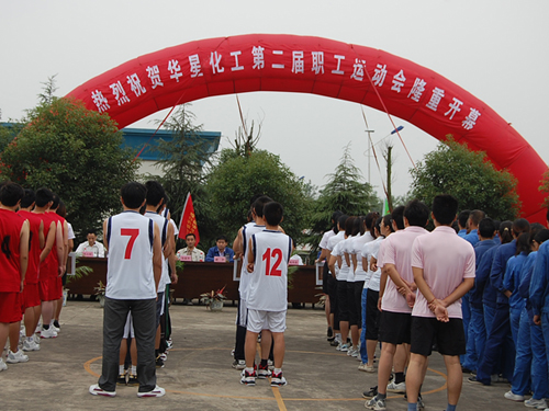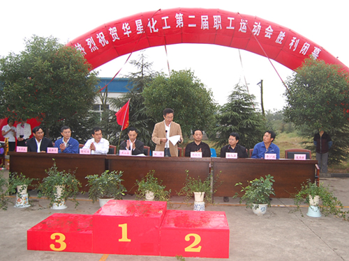 最后,董事长谢平郑重宣布:华星化工第二届职工运动会正式开幕!