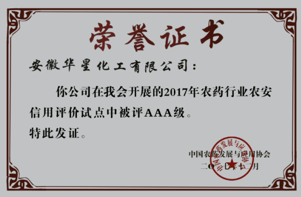 本次评选中,全国共有100余家农药行业申报评选,华星化工及旗下产品均斩获荣誉,充分展示了公司以合规、诚信经营的良好形象和以高品质环保农药产品赢得了广大用户及权威部门的认可,是公司信用度和产品实力不断提升的有力体现。