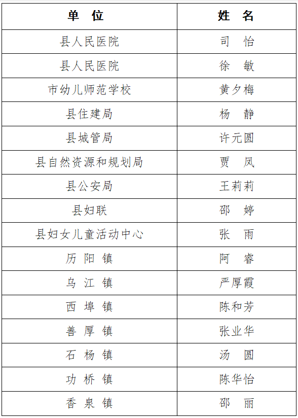 2019年度县级“三八红旗手”名单