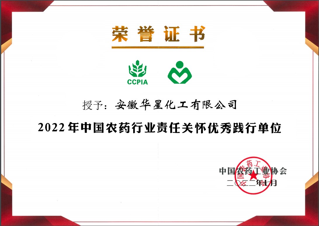 近日,中国农药工业协会正式发布《2022中国农药行业责任关怀报告》,授予齐鲁华星等25家企业“2022年中国农药行业责任关怀优秀践行单位”,公司常务副总经理李文明荣获“2022年中国农药行业责任关怀先进工作者”称号。