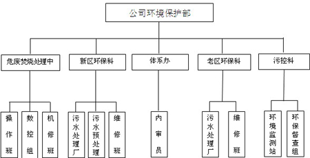 公司成立环保部,下设新、老厂环保科、污控科、环境监测站和污水处理厂和危废焚烧处理中心等科室,公司现有环保工作人员78名,其中:环境工程专业的大学本科18名、大专22名、中专7名,从事污染治理的研究、试验、监测、控制和管理工作。公司采取内培和送外委培,使员工的专业技能不断提高,以适应企业的发展。