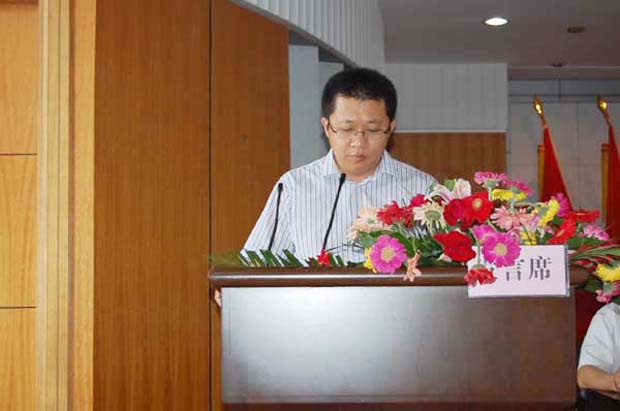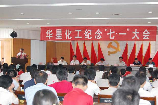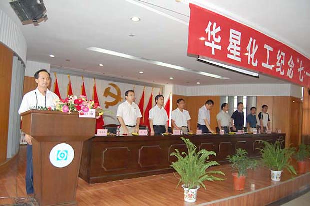 下午3时30分,周玉生宣布大会开幕,会场随之响起雄壮的中华人民共和国国歌。紧接着,党委副书记周玉生代表中共安徽华星化工股份有限公司党委作了《华星化工党务工作报告》。在报告中,周玉生说在中国共产党成立八十八周年即将来临之际,华星党委在这里召开纪念“七?一”党员大会,是一次具有历史意义的大会,是一次承前继后、开拓创新的大会。回顾半年来的工作,华星党委在上级党组织的指导下取得了一些成绩,但是也存在着一些不足,因此2009年下半年华星党委将更加高标准、高质量地要求各支部、各党员严格践行党的义务与责任。