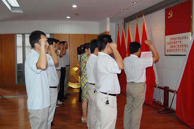 中国共产党是一个伟大而光荣的党,能够成为一名中共党员是每个华星人的愿望。华星党委作为先进的企业党组织更是时刻关注着华星人的成长,在本次的党员大会上有一项重要议程便是预备党员进行入党宣誓,这些预备党员都是来自公司各系统的先进份子。他们年轻而有为并且积极向党组织靠拢,在公司党委的殷切关心下及自身的不懈努力下,今天他们正式迎来了入党宣誓的光荣时刻。当高成松、徐飞、陈刚等十多名预备党员迈着矫健的步伐走上主席台时,他们的心情是异常激动的。在鲜艳的党旗前,在神圣的党徽前,在领誓人的带领下,他们宏亮而激昂地齐声高喊:“我志愿加入中国共产党,拥护党的纲领,遵守党的章程,履行党员义务……”。