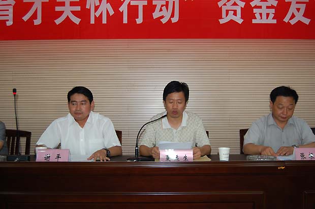 谢董事长发言后,庐江县经委主任夏远生讲话。他对受助学生提出了殷切希望:第一,希望同学们正视贫困,矢志不渝。第二,希望同学们自强自立,艰苦奋斗。第三,希望同学们锤炼品德,增强爱心。第四,希望同学们刻苦学习,成才报国。
