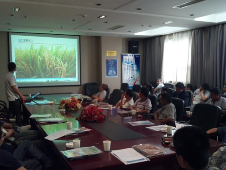 2013年6月9日,华星化工“星耀九州”华中第一站在宜城正式启动,会议安排在宜城兴宜大酒店5号会议厅进行。会议伊始,民天农资袁万波总经理向到场40位零售客户对华星多年的支持表示了感谢;然后进入会议主题:华星市场部产品经理刘铁强对华星新品50%吡蚜酮——万力达,25%凯撒大地,水稻区全能杀菌剂——华星稻黄金进行了详细的技术讲解。湖北省区经理张读华对华星近年来的巨大进步和后期愿景规划做了详细介绍,同时对华星草甘膦、62%华星高手道及华星2013年产品销售政策向零售商做了细致的解读。经介绍经销商对华星公司充满信心,从长远角度出发愿意与华星共建美好未来。由于会议前期业务代表方海林准备充分,会议取得了较好的效果,现场收款45万左右,部分零售客户后期还有进一步交款的意愿,预计能货款能达到60万左右。“星耀九州”宜城启动会取得了圆满成功,起到了推动华星新产品在宜城的影响力的会议主题,吹响华星在荆楚大地新产品宣传推广的集结号。