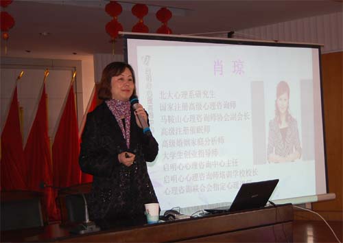 肖老师的讲座生动活泼,感染力很强。他通过我们身边发生的大量案例的剖析,从家庭和社会、工作和生活、精神和心理等方面阐述如何放下理应不是自己所承担的包袱,如何使自己能够快乐地生活。他的讲座方法多样。有时是通过一组组漫画,生动地描述了当前存在的一些浮躁思想倾向,引导大家如何树立乐观、积极、向上的人生态度;有时是通过在座的每位女职工进行爱心互动,教大家如何控制情绪,摆正心态,带着好心情去生活、去学习、去工作。听了肖老师的课,大家都感到很有收获,有豁然开朗之感。