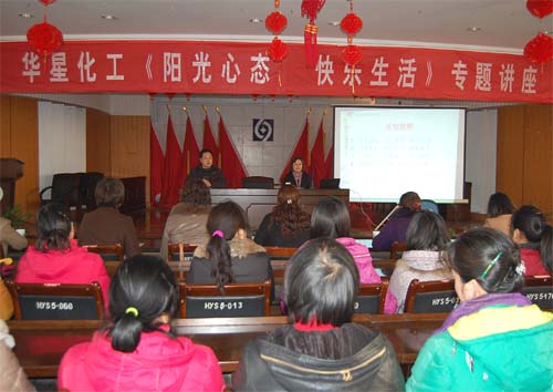 为庆祝“三八”国际妇女节,3月6日下午,公司在老厂区五楼会议室举办了一场名为《阳光心态 快乐生活》的专题知识讲座,市心理咨询专家肖琼受邀前来主讲。参会的对象是来自公司各个岗位的100多名女职工,她们是通过学习活动来迎接自己节日的。参加讲座的领导有和县总工会主席夏尤金、副主席张晓、何延翠等,公司的部分高管也参加了讲座。公司行政总监张根保主持了这场讲座。