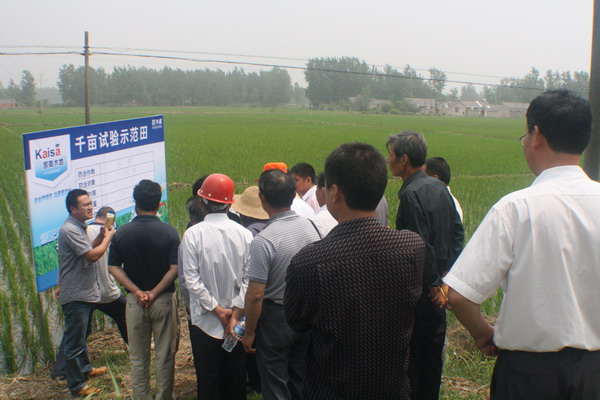 在示范观摩会现场,为充分了解“凯撒大地”的实际效果,市农技推广专家及种田大户约100多人深入到田间见证了华星化工“凯撒大地”规范使用及科学试验。在试验现场华星化工市场部经理鲍伟就“凯撒大地”推广价值、使用技术和注意事项分别做了介绍和讲解。随后大家对使用过“凯撒大地”的田块进行效果对比,对比发现用过“凯撒大地”的田块秧苗无虫害,田间表现极为优异。