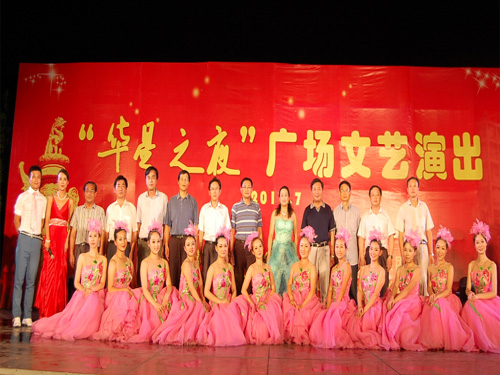 为进一步丰富基层人民群众的精神文化生活,7月23日晚上,由市总工会主办,县总工会、市文化宫承办,华星化工协办的“送文艺下基层和县行——华星之夜文艺演出活动”在公司新区办公楼广场隆重举行。市总工会常务副主席、党组副书记李迅,党组成员、副主席晏琢,党组成员、经审委主任孙维胜,和县县委常委、县委宣传部部长刘金星,县委常委、县人武部政委赵敦明,县委常委、副县长洪艳群,县总工会主席夏尤金,市工人文化宫主任路茂琪及相关县直单位负责人应邀观看演出。华星化工党委副书记兼行政总监张根保,副总裁刘元声,党委副书记徐经生,工会主席盛学龙出席演出现场,前来观看演出的还有县公安局、卫生局、房管局、乌江镇、供电公司、宏晶集团、三联泵业和华星化工派出的职工代表方阵共计600多人。马鞍山市电视台、皖江晚报、和县电视台等多家媒体专程赶至演出现场进行了采访报道。