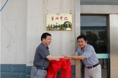 最后,两位公司领导与巢湖学院一行领导共同为“巢湖学院大学生实践基地”揭牌并合影留念。