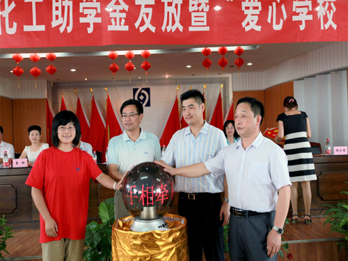 8月21日上午,华星老区五楼会议室,由和县总工会和华星化工联合开展的2012年和县“育才关怀”华星化工助学金发放暨“爱心学校”揭牌仪式在这里隆重举行。马鞍山市总工会常务副主席李迅、副主席毛善群、和县县委副书记戴瑞、县人大副主任张居发、县政协副主席、县委统战部部长鲁玲、县总工会主席夏尤金出席仪式,副县长马作兵主持,出席仪式的公司领导有党委副书记行政总监张根保、工会主席盛学龙、工厂厂长谢永清。