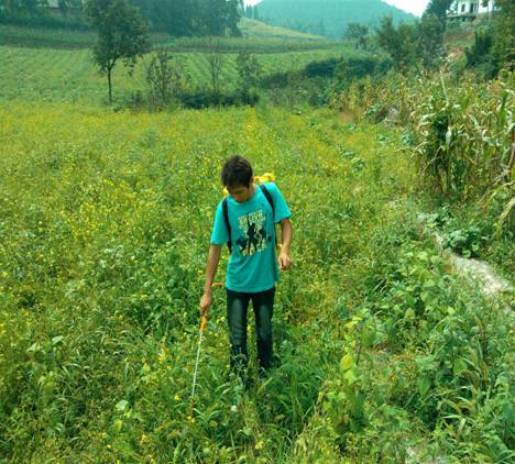 贵州推广团队先后在黔西县永兴镇的六个村组进行扫荒的试验示范、宣传工作,试验示范点就选择当地种主要植作物烟草地、玉米地、荒地以及西瓜地。