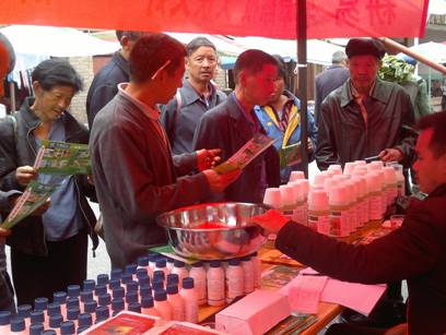 大家收集“点子”,主打当地特色“点子”牌:在黔西重新镇(零售商谢雪)摸索以下乡放电影的形式推广扫荒和英格蓝,聚焦了几千对眼球;在村路口搞试验示范地,召集大户就地开现场会和农民会。