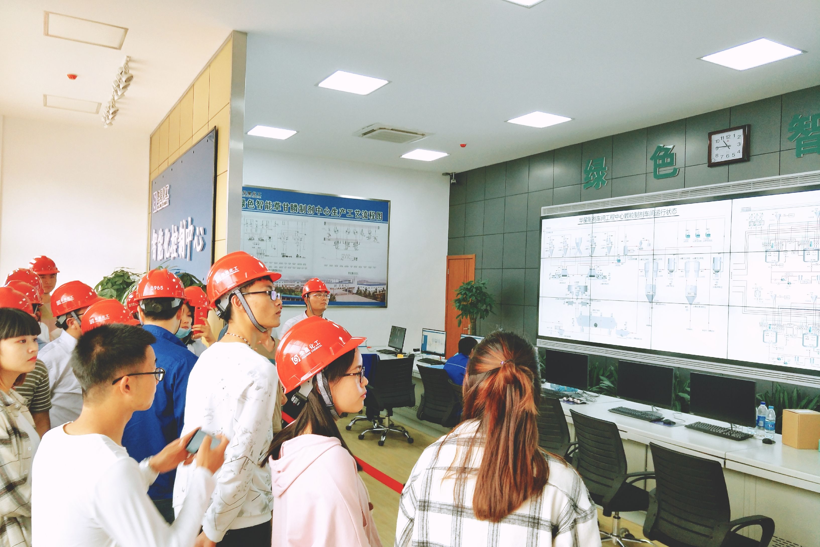 当天上午,观摩营师生一行在公司副总经理李文明、张根保陪同下,依次参观了华星化工环保分公司、绿色智能制剂加工中心、绿色智能制剂包装中心和氯碱分公司,听取了公司绿色发展、创新发展从理念到实践的演变介绍,并结合专业实际进行问询和深入了解,对公司先进的环保处理装置、前沿的绿色智能生产工艺、高效的现场管理模式纷纷赞叹不已。