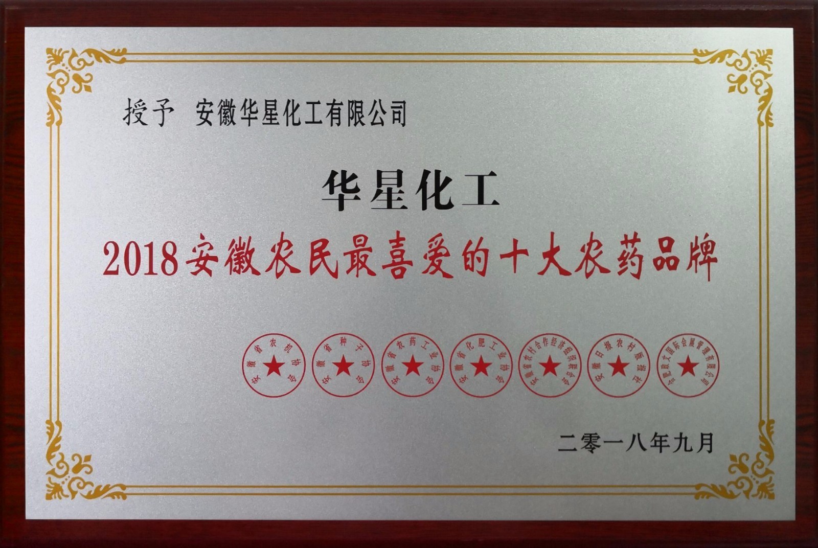 此次评选活动按照“企业自愿、协会主办、媒体搭台、群众参与、市场化运作”的原则,旨在推进安徽省现代农业产业体系、生产体系、经营体系建设,帮助生产企业树立品牌形象,提升企业品牌美誉度。经过宣传发动、投票评选、品牌确定三个阶段,华星化工在省内数十家农药参评企业中脱颖而出,一举荣获“2018安徽农民最喜爱的十大农药品牌”称号。
